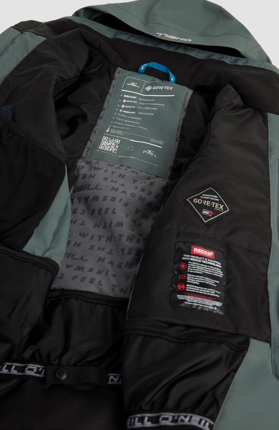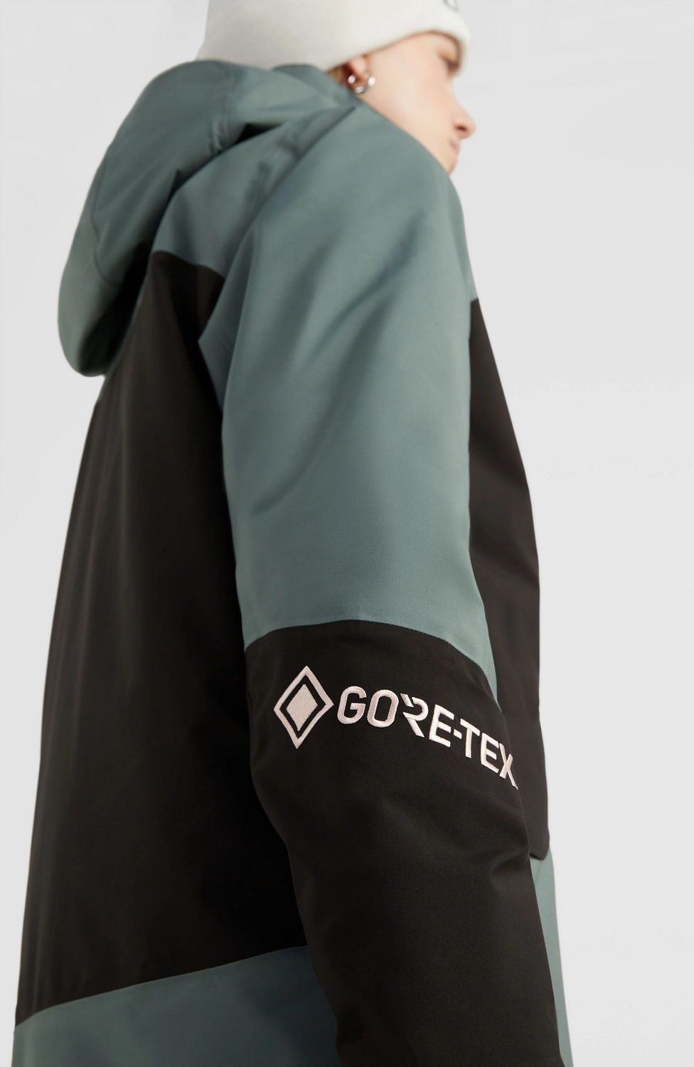 Dit is een heerlijk warme ski jas uit de serie Gore-Tex Inusulated van O’Neill. De jas is gemaakt van gerecycled polyester. Verder is de jas ademend en helemaal waterdicht. De jas is extra warm door de twee lagen gemaakt van Gore-Tex materiaal. Er zit ventilatie bij de oksels om de temperatuur goed te reguleren. Het materiaal heeft hyper stretch voor optimale bewegingsvrijheid. De jas heeft nog extra zakken met rits en een verstelbare capuchon. Uw handen blijven extra warm door de polskappen met duimlussen bij de mouwen. Deze kappen voorkomen sneeuw in de mouwen. Er zitten vakjes voor audio-apparatuur, een skipas en goggle in. Verder heeft hij nog een verstelbare broekspijp en een sneeuwvanger. Dat maakt deze jas perfect voor op de piste en de koude winterdagen. De jas is goed geschikt voor het skiën.